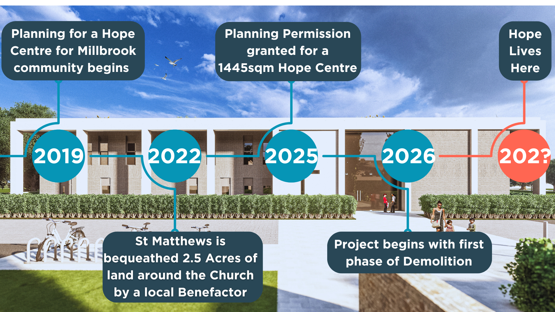 A Centre at the heart of Millbrook where families can gather, friendships can blossom, children can play and the lonely find company. A place where healing, laughter, learning and hope grow together.